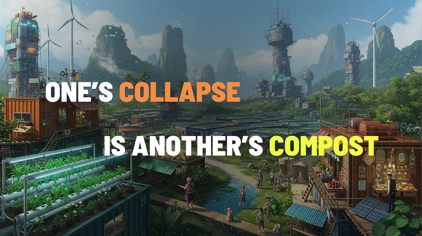 Following this thread further led us to imaginations of a post-apocalyptic world characterized not by the mourning of collapsed institutions but by the energetic pursuit of new post-apocalyptic opportunity. Once we learned to see past the center, we found âand eagerly built â a world bursting with energy, opportunity, and agency.